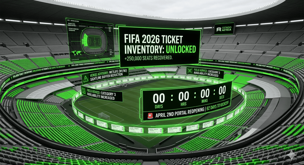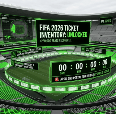 The audit, which concluded early this morning at FIFA headquarters, identified over 250,000 seats previously held in reserve for broadcast infrastructure, technical sightline buffers, and VIP hospitality allocations that have now been cleared for public sale. These tickets will be integrated into the highly anticipated April 2nd Portal Reopening, a date that industry experts are now calling "The Final Face-Value Stand."