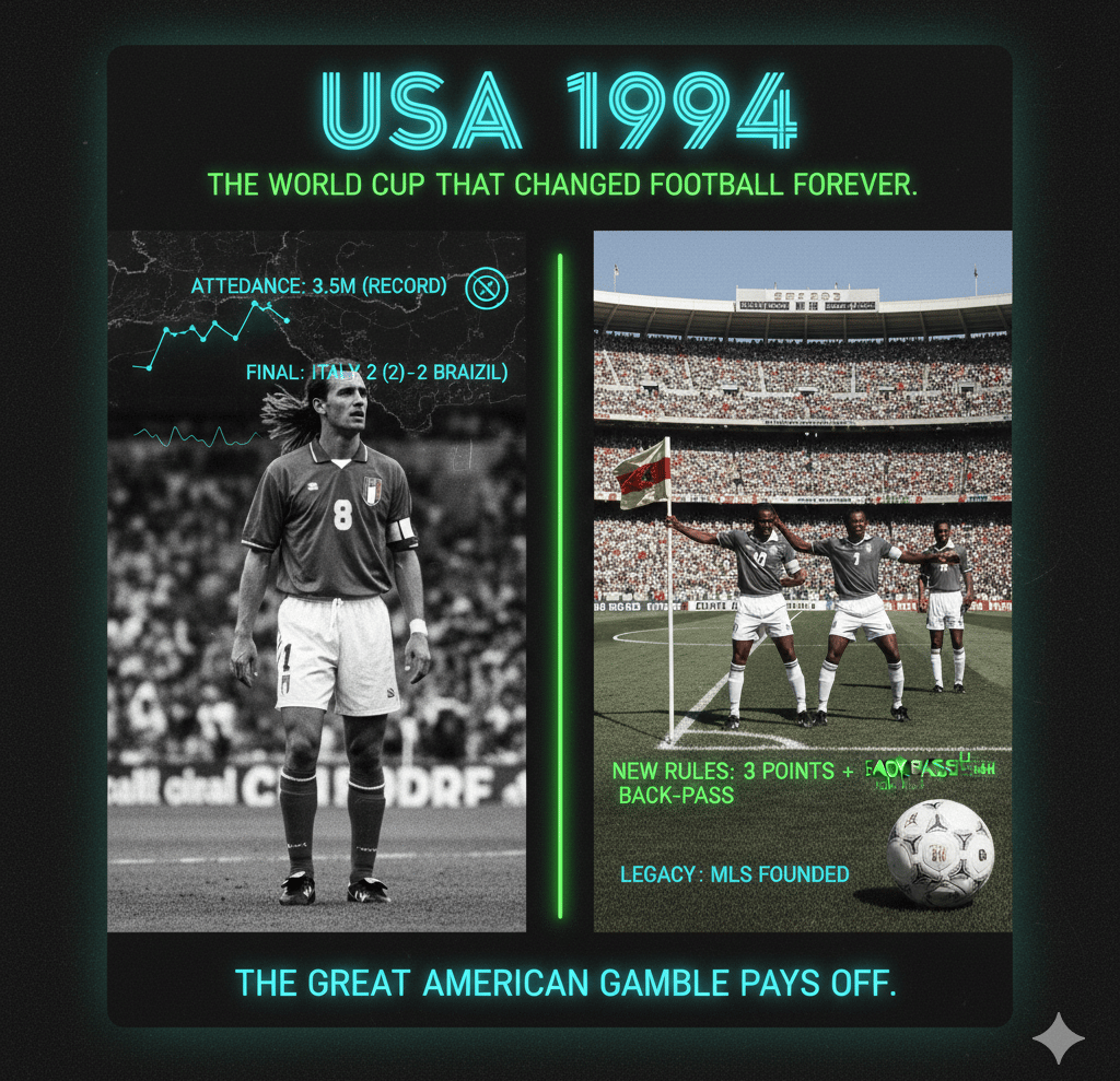 Before 2026, there was 1994. From the rule changes that saved football to Baggio’s heartbreak, we break down the tournament that turned the U.S. into a global soccer powerhouse. Essential reading for every fan heading to the 2026 World Cup.