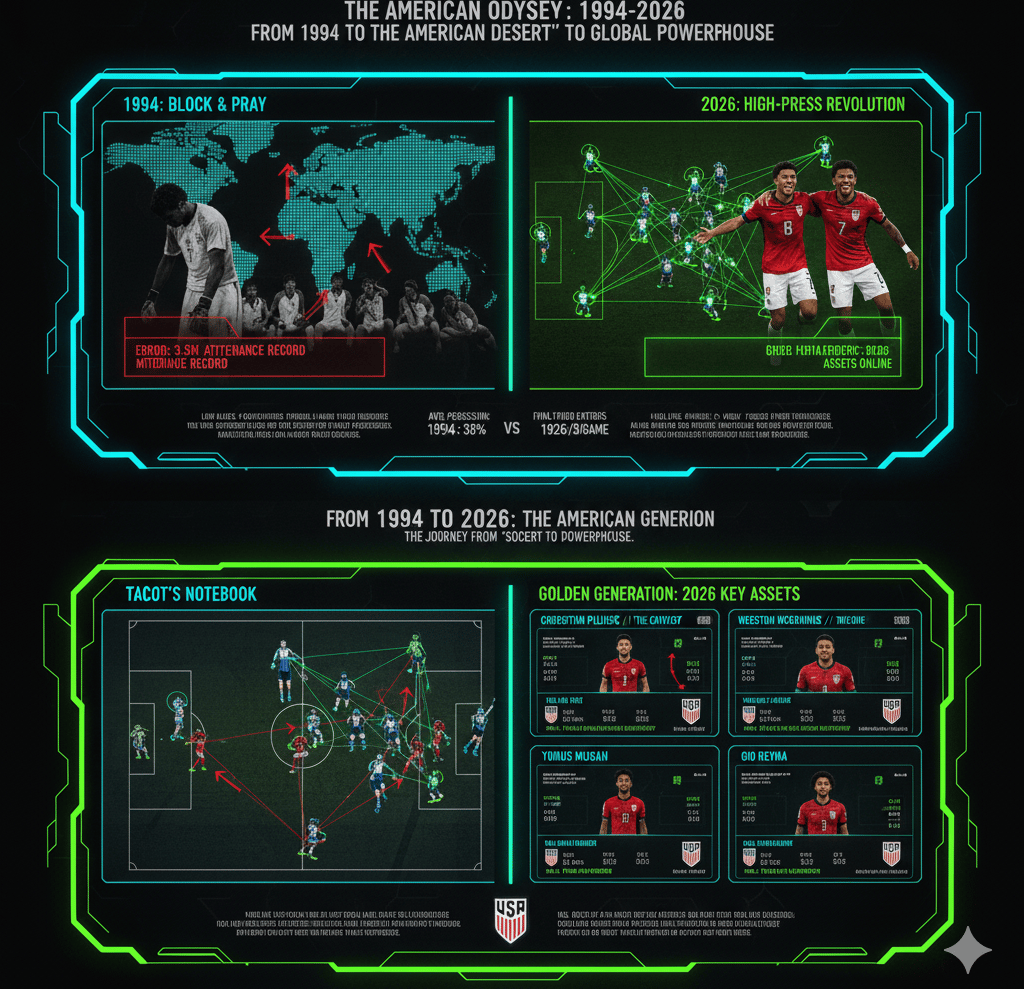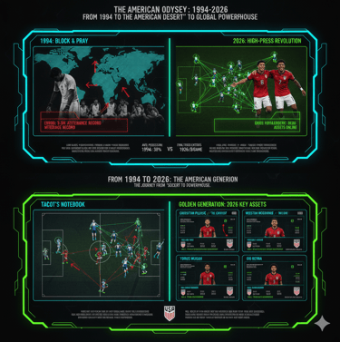 From the "Soccer Desert" of 1994 to the tactical dominance of the 2026 Golden Generation, we break down the three-decade evolution of American soccer. An essential long-form dossier on the players, tactics, and cultural shifts defining the future of the sport.