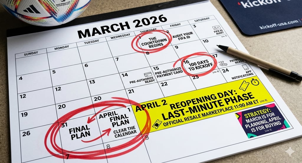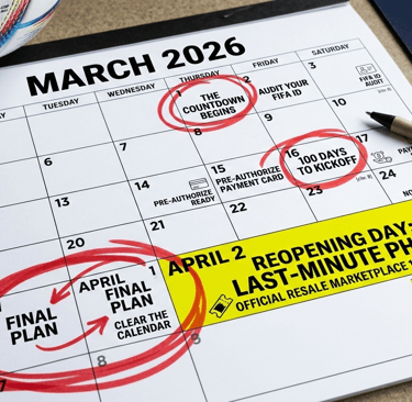NEW YORK/MEXICO CITY/TORONTO — Today, February 28, 2026, marks more than just the end of the month. As the sun sets on the final day of February, the World Cup community enters its most high-stakes month of preparation. Tomorrow is March 1st, the beginning of the "Quiet Before the Storm"—the final 31-day window before FIFA reopens the floodgates for the Last-Minute Sales Phase and the Official Resale Marketplace.